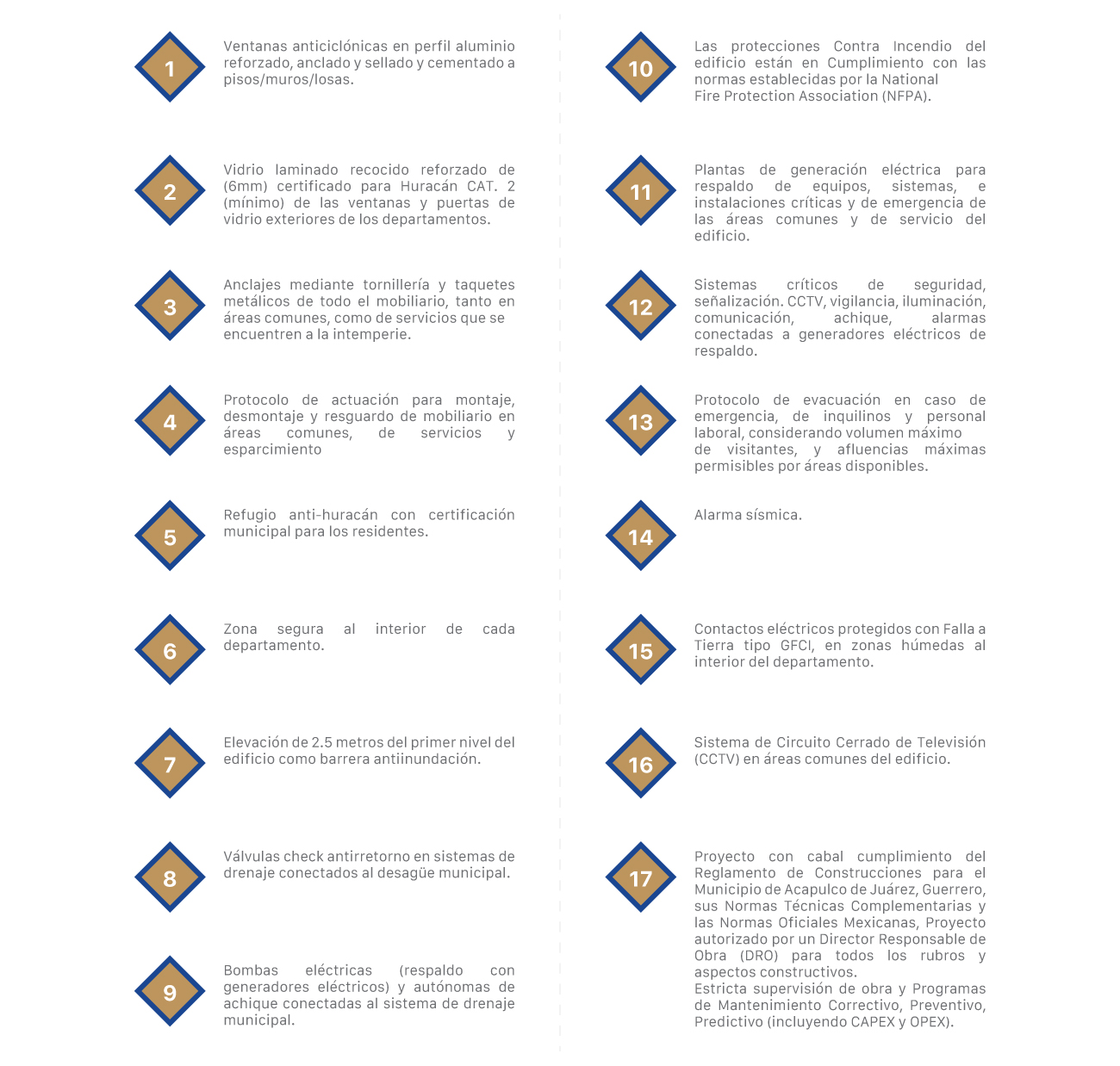 Con la asesoría y vigilancia de la Compañía de Seguros, The Pierre & Diamonds será proyectado y construido con los más altos estándares de seguridad, calidad y resistencia en su arquitectura, ingeniería y elementos de terminación. Además de contar con un área de refugio anticrisis certificada, garantizando la máxima protección.